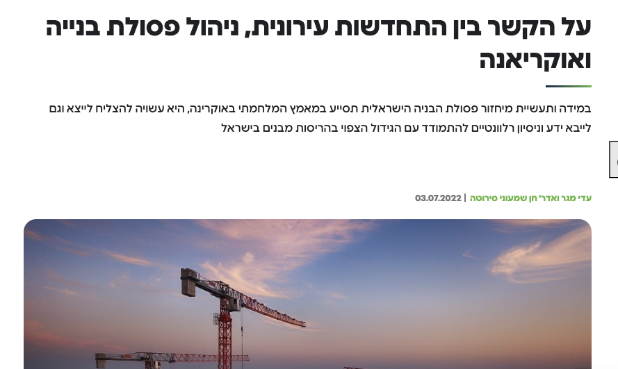 Adi Mager and Arch. Chen Shimoni - article in the magazine “Magdilim”, 2022