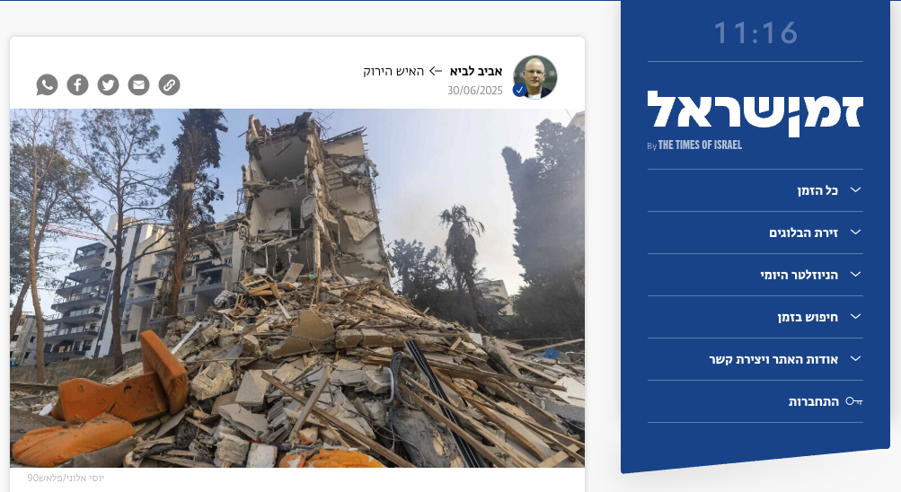 Article in Zman Yisrael by Aviv Lavie, June 2025